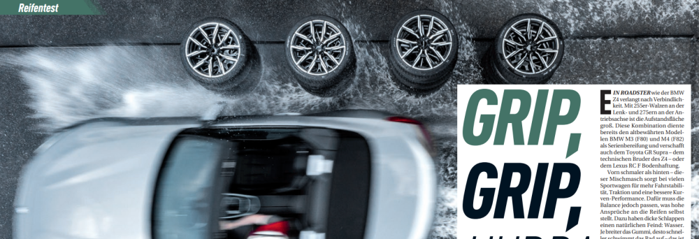 Auto Bild Sportscars a testé huit pneus été en dimensions 255/35 R19 et 275/35 R19 - un montage décalé utilisé sur des voitures comme la BMW Z4, la BMW Supra et les modèles BMW Série F M3/M4. Les tests ont été réalisés sur le circuit de Wachauring en Autriche et ont porté sur la tenue de route sur sol sec et mouillé, le freinage, l'aquaplanage, l'adhérence sur piste d'essai, le bruit et la résistance au roulement. La BMW Z4 a servi de véhicule d'essai. Les marques testées étaient Continental, Bridgestone, Pirelli, Vredestein, Kumho, Michelin, Hankook et Goodyear.