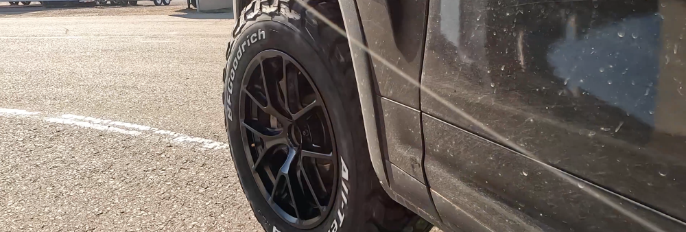 L'écart de poids est la différence la plus frappante sur le papier. Avec 26 kg par pneu, le BF Goodrich KO3 est près de 20 % plus lourd que le Bridgestone (22 kg) – une masse non suspendue et en rotation non négligeable qui peut influencer la dynamique du véhicule. Ce poids supplémentaire s'explique par la construction à trois plis en polyester des flancs du KO3 et par sa nappe de renfort supplémentaire sur la bande de roulement, ce qui en fait théoriquement le plus résistant des trois. Le coût au kilomètre garanti est également à l'avantage du Cooper et du Bridgestone, qui offrent tous deux une garantie de 96 500 km contre 80 500 km pour le KO3.