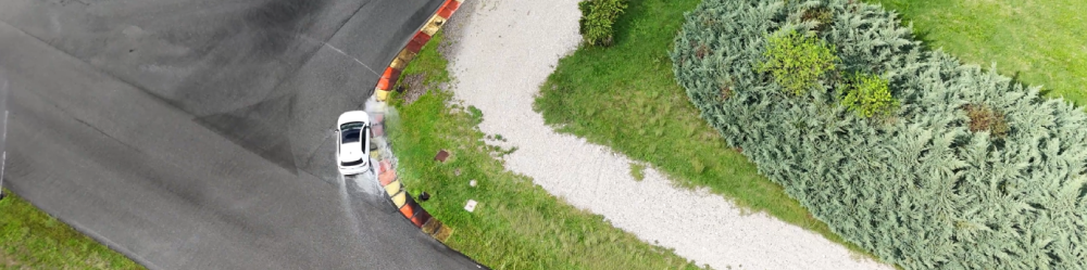 Pour les essais sur sol mouillé, je pilote à la limite d'adhérence sur un circuit dédié. J'utilise généralement des circuits spécifiques équipés de vibreurs pour maintenir une surface de roulement homogène. L'ESP est désactivé autant que possible afin d'évaluer l'équilibre naturel du pneu, sa réactivité et son comportement en limite d'adhérence sans que l'électronique ne vienne fausser les résultats. Je réalise généralement entre deux et cinq tours chronométrés par train de pneus, selon le circuit, le type de pneu et la constance des conditions. J'exclus les tours affectés par une erreur de pilotage manifeste ou une variation environnementale évidente. Des essais de contrôle sont effectués régulièrement tout au long de la session, et j'utilise souvent plusieurs trains de pneus de contrôle afin que l'usure des pneus de référence ne devienne pas une variable significative.